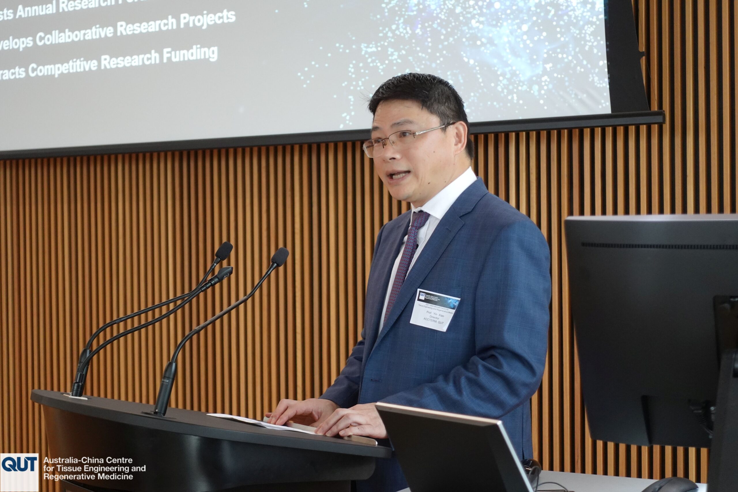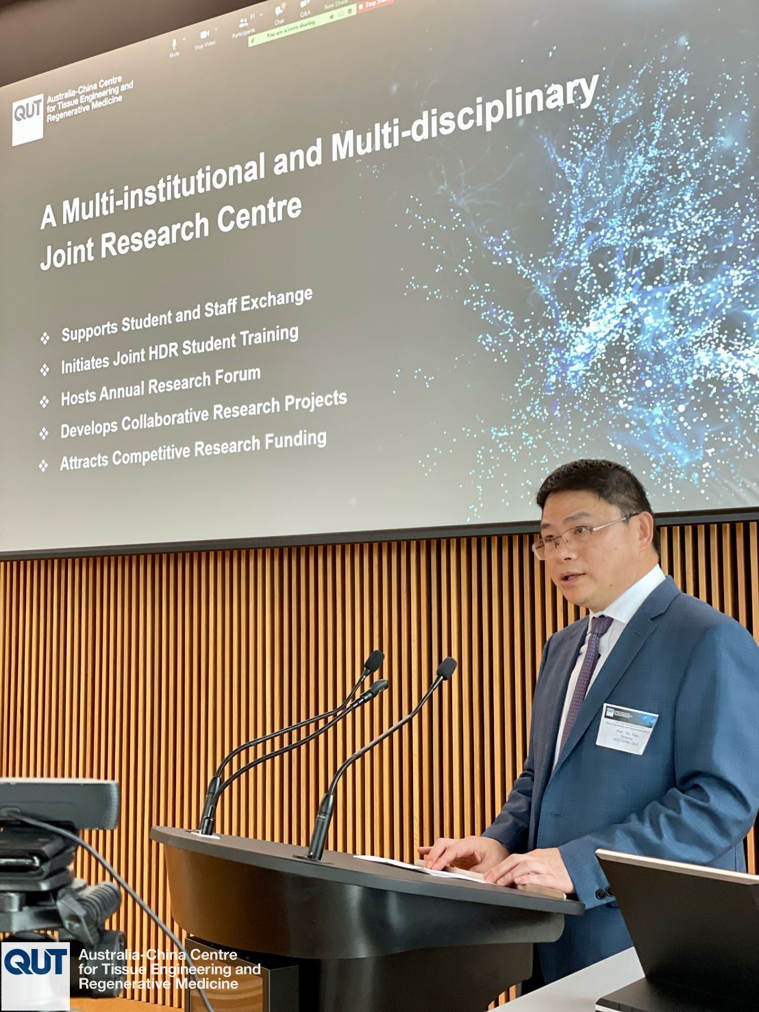 Professor Zhiyong Zhang, Founding Director, Translational Research Centre of Regenerative Medicine and 3D Printing Technologies, The Third Affiliated Hospital of Guangzhou Medical University is the co-chairman of this year’s forum. He joined the Forum online and welcome all the VIPs, guest speakers and attendees who could not be in the beautiful QUT Education Precinct in person due to COVID restrictions. He shared his own experience growing together with ACCTERM since years ago, as well as his ambition in developing this great collaboration platform to a leading network in tissue engineering and regenerative medicine research translation.