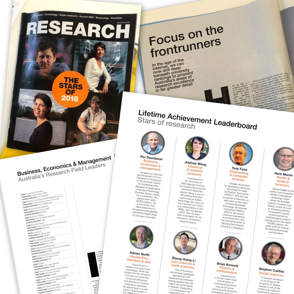 Some nice coverage in The Australian’s Research Supplement this week: QUT highlighted as #1 in Entrepreneurship research and Per Davidsson at the top of the “Lifetime Achievement Leaderboard” among Australian researchers in “Business, Economics & Management”. The article is based on data from “League of Scholars” which apply their own algorithms to data sourced from Google Scholar.
