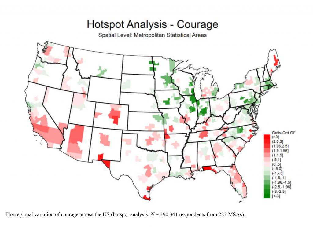 Today we published a new ACE study that is a collaboration with researchers from the UK and Germany that visited ACE last year to work on this project. This study is the first to map psychological courage (“persistence despite fear”) across regions, using big data from almost 400k US residents. We found interesting effects (but be careful re: causality) on entrepreneurial activity (positive) and startup survival (negative). So modern, innovation-driven economies and societies may “need” courageous, bold and entrepreneurial individuals to thrive (and universities might try to foster this) yet the same qualities can bring greater risks and a more riskier and adventuresome economic behaviour, which in turn might have manifold consequences for economic development. We also study mechanisms and focus on economic risk-taking. The study is also interesting because it is a collaboration with Time Magazine (which ran a Harry Potter Quiz, and part of that was a section that included our courage items). for more information please contact Martin Obschonka martin.obschonka@qut.edu.au