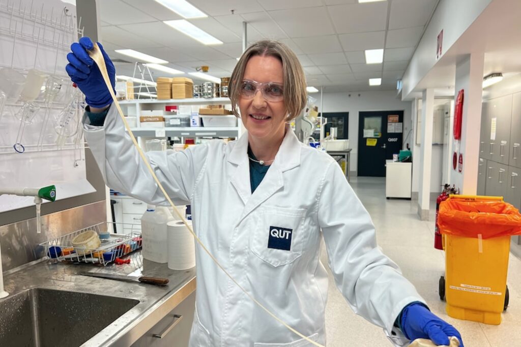 Underwater bioadhesives are an important part of the RRAP Coral Aquaculture and Deployment R&D program that aims to deliver the means to reliably breed corals in captivity at low cost, at a medium scale using sexual and asexual methods. In addition, this program develops methods to subsequently deploy the breed corals at scale using deployment devices. The group lead by Prof Leonie Barner develops a range of bioadhesives and hybrid materials supporting coral deployment to the reef. Biomimetic glues (aka bioadhesives) are inspired by nature and are important materials that help to fixate coral spat taps to deployment devices and retain them on the reef. In addition, bioadhesives are being explored for stabilising rubble seabeds as well as for kelp restoration. Prof Barner’s group works closely with Prof Scott Bryan’s group (Rubble Stabilisation) forming the “QUT Bioadhesive Group”. The QUT Bioadhesive group was a finalist for the Universities Australia Shaping Australia Awards in the “Problem Solver” and QUT Excolo! competition.