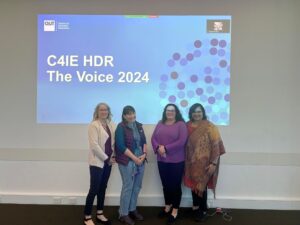On 14th June, our Centre hosted its annual ‘C4IE HDR The Voice’ event, where our Higher Degree Research (HDR) students had the opportunity to present their research to peers in a Three-Minute Thesis (3MT) style pitch. It was a pleasure to see Shannon O’Brien, Sentha Govin-Vel, Elise Bray, and Tracey Ramsay share their insightful work. A huge thank you to our judges— Dr Ronan Kelly, Dr Julie Arnold, and Lara Maia-Pike—and to everyone who attended, both in-person and online, for making this event a success!
