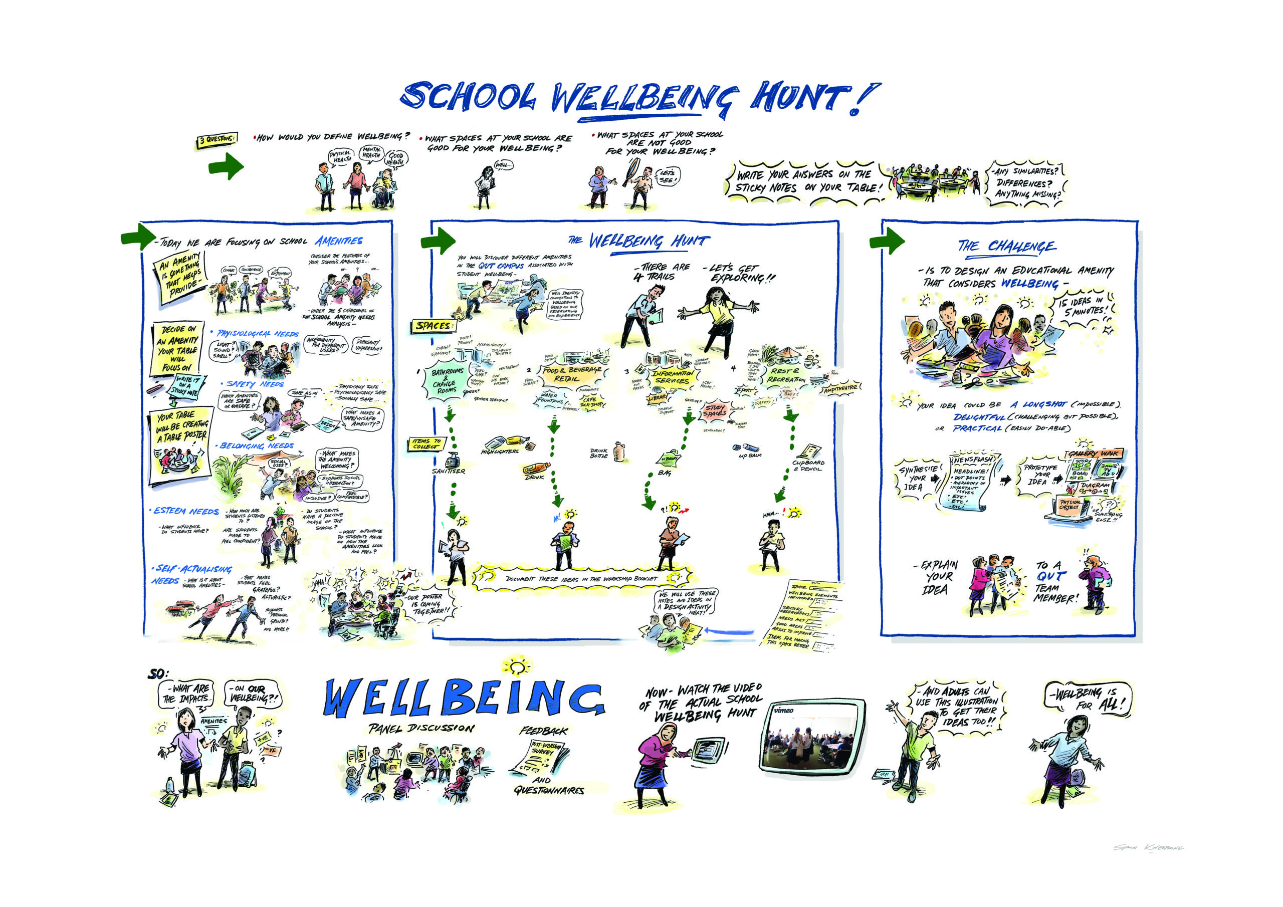 The purpose of this project was to explore school student conceptions and experiences of education environments and their connection to student wellbeing. These insights are sought to provide an understanding of the interrelationships of the physical, mental and social spatial dimensions in the design of education environments for wellbeing with a view to improving the design, provision, use, and evaluation of them.