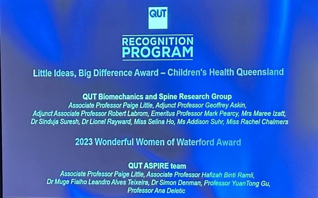 Our research director Aspro Paige Little was recognised for all the work she has done with inspiring the next generation of STEM students as well as the partnership with Sealy of Australia. The BSRG team was also recognized by QUT as having external recognition from the Queensland Children’s Hospital.