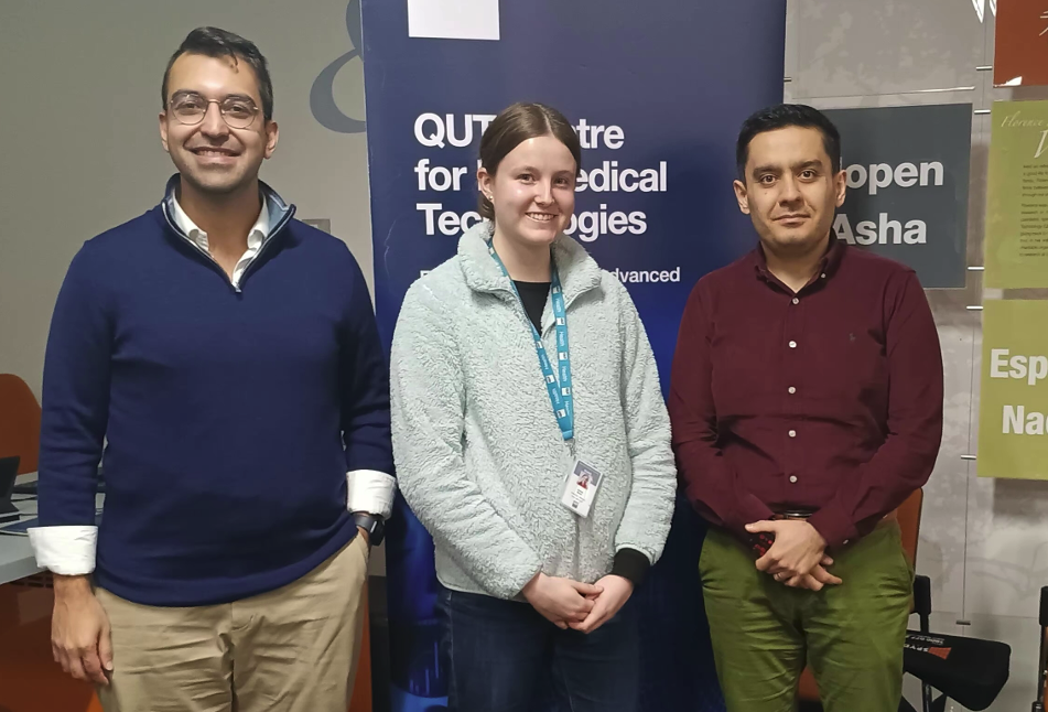 Dr Navid Freidoonimehr (right in the photo), Heart Foundation Postdoctoral Fellow and ARC DECRA Fellow, talked about when small vessels cause big problems. Our Master Student, Jessica Marsh, shared her research on Development of a 3D-Printed Gut-on-a-Chip Model. Dr Navid Toosi Saidy (top right in the photo), co-founder and CEO at Propel Health AI and former Digital Health Leader at Max Kelsen, shared his career journey from academia to CEO.