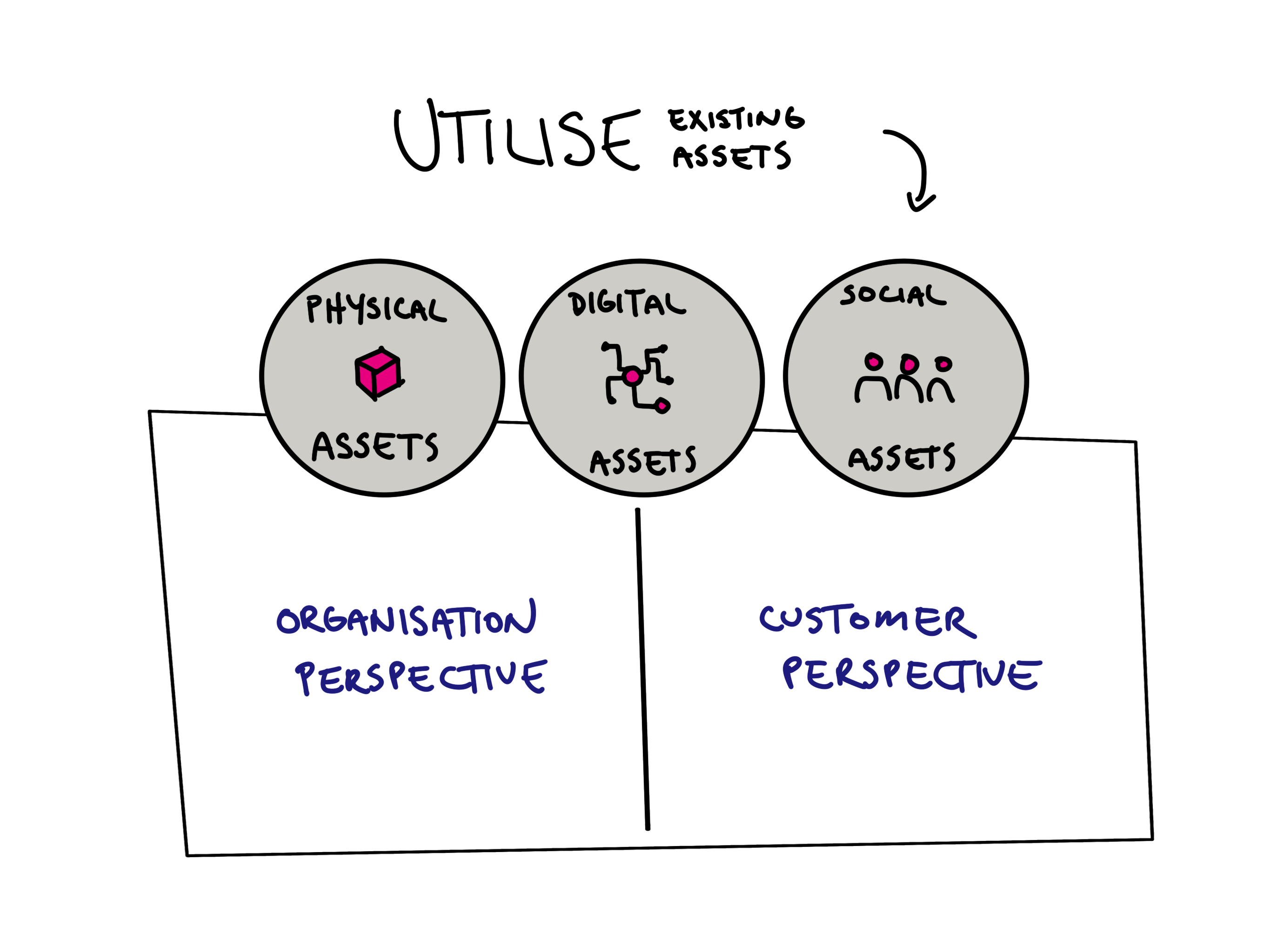 This approach requires you to look at the assets in your organisation (human, physical, digital or others) in a new way. Start asking yourself questions you might not have asked before. What else could I do with these assets? How could I use them better?, How could I use them in new ways?