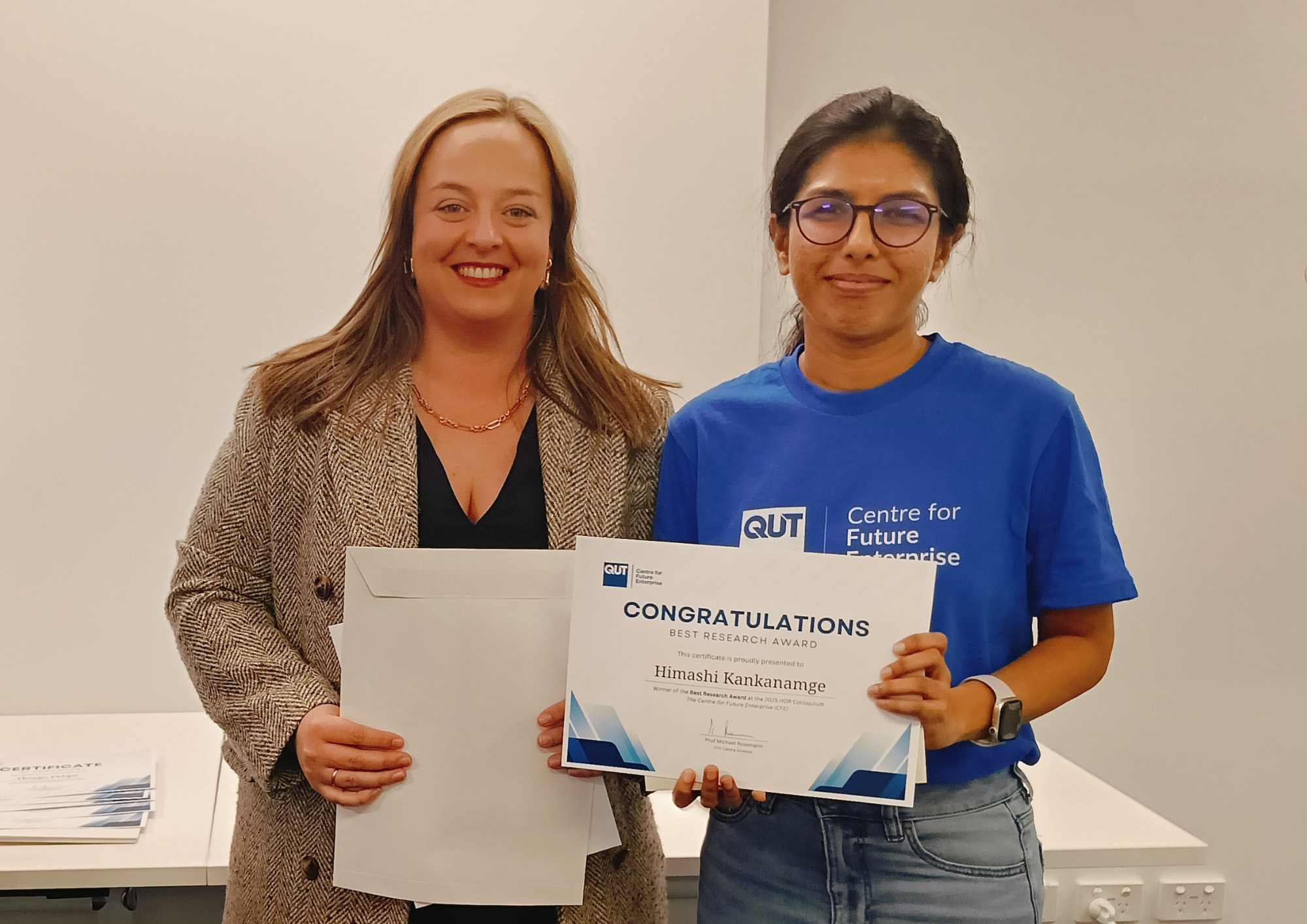 We extend a heartfelt thank you to our incredible HDRs for your inspiring presentations. Your passion and commitment to advancing knowledge lit up the room and reminded us all why research matters. Your work continues to enrich our understanding of enterprise and its evolving future, and we’re proud to support your journey. We’re also deeply grateful to our judges and panelists for their thoughtful feedback and generous support. At CFE, we’re lucky to be part of a collegial and uplifting community, one where collaboration thrives and everyone genuinely champions each other’s success.
