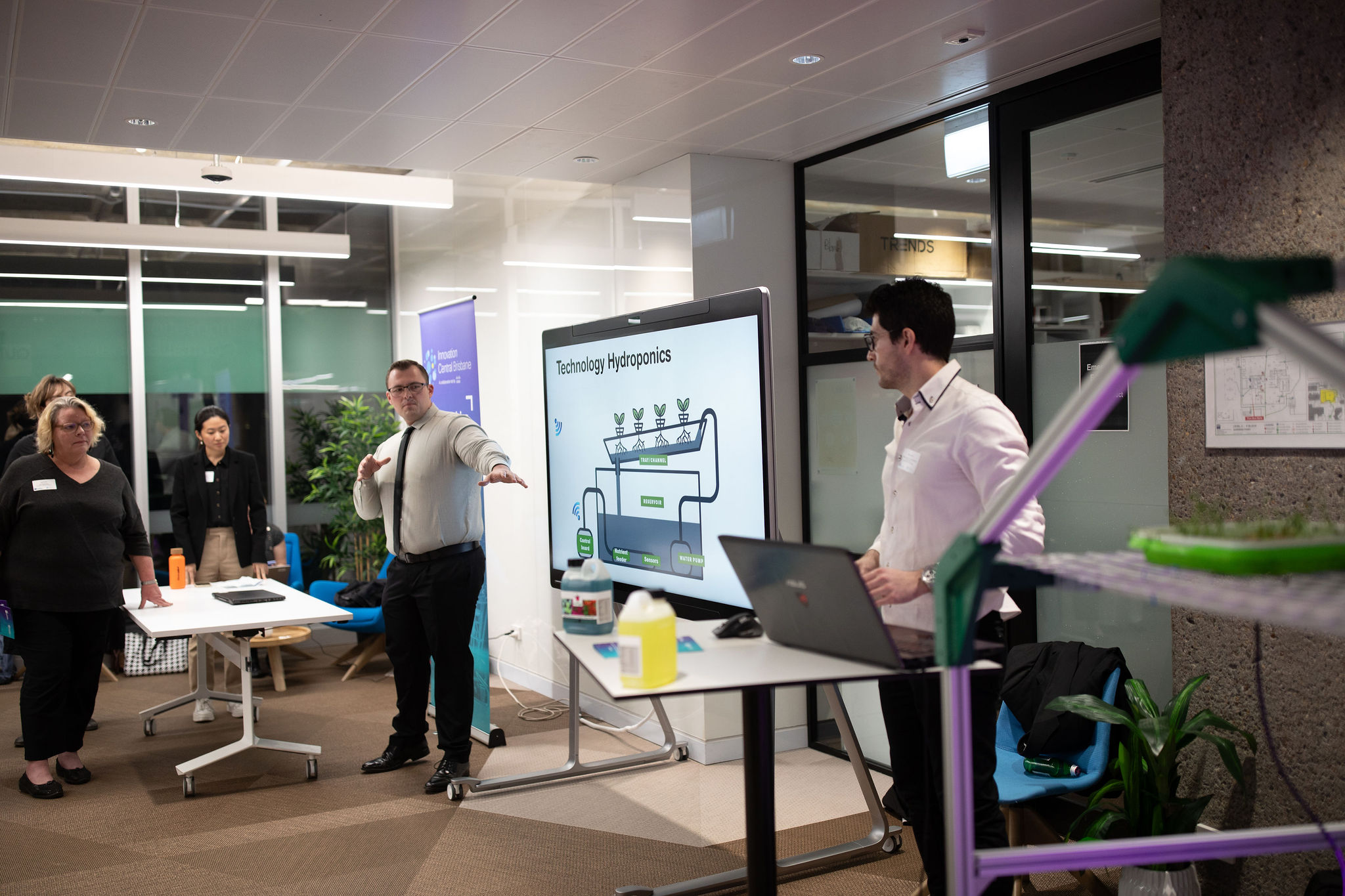 Congratulations to the three winning student teams! Taylah, Olivia and Kaitlyn showcased Hey Carta, an app that provides personalised food, recipe and meal plans customised to users’ needs. Santiago and Alex showed guests how to grow their own hydroponic produce with the help of nutrient film techniques and a real-time web app, InGrow. Finally, Erin explained how her team’s online marketplace, GoodWaste has the potential to significantly reduce food waste by leveraging technology to extend the value chain of food. Well done students!