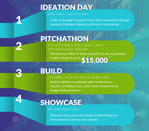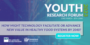 Join industry leaders and design thinking experts to explore the nexus of food systems, technology systems, and health systems. Develop your ideas, and pitch to win funds to build a prototype at the QUT Youth Research Forum and Pitchathon.