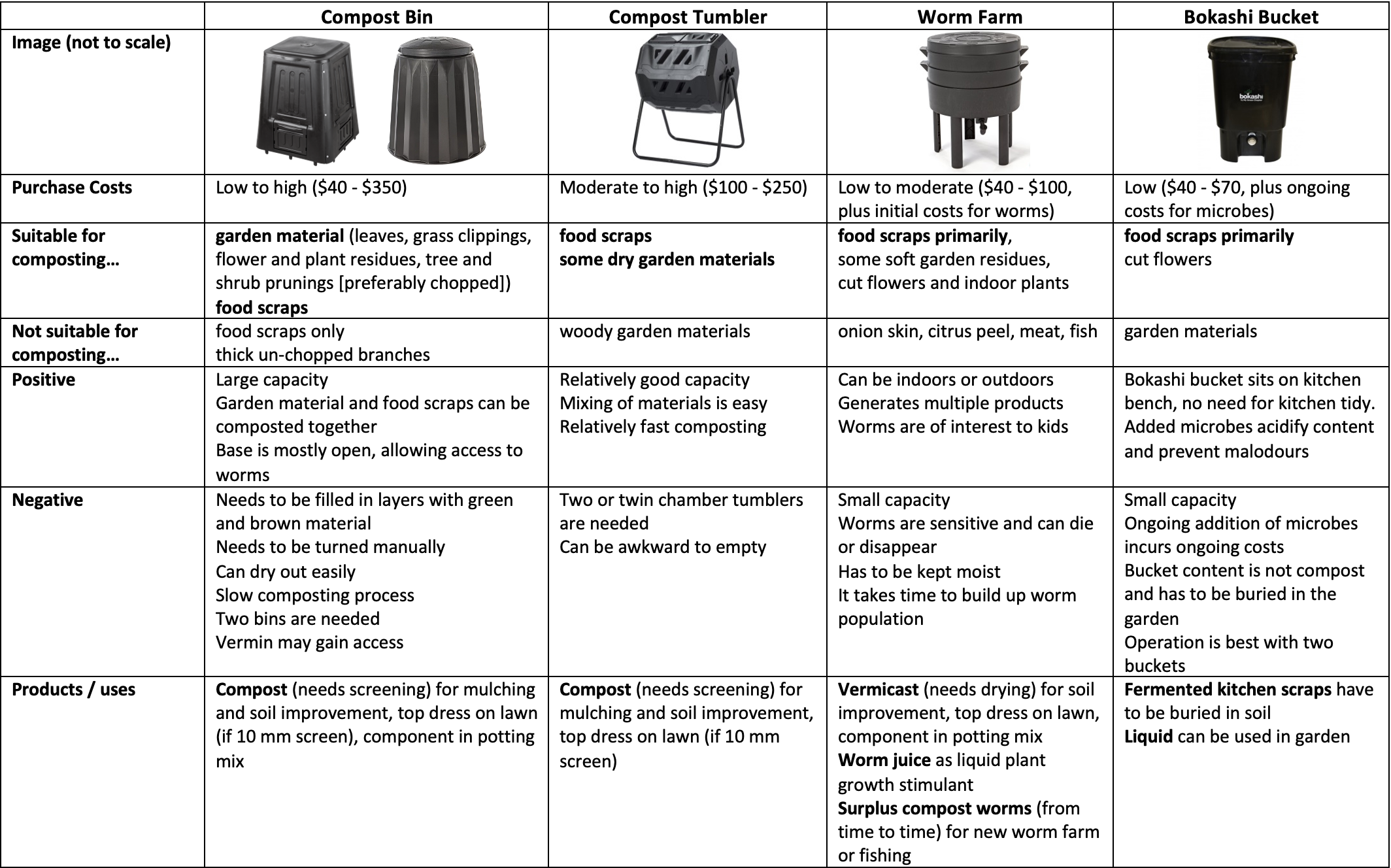 - Provide equipment for different compost systems, including bin, barrel, worm farm and pile.
