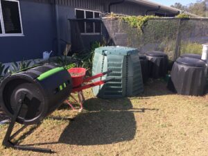 The pictures below show a selection of different compost bins around the school yard at Yarrabilba SSC, including a tumbler and regular compost bins of various sizes. We’ve also included some photos of the YSSC students’ antics with the bins!