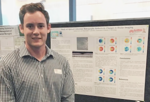 Congratulations to Jack Clarke, Undergraduate Engineering Student from Griffith University, School of Engineering. During 2017 Jack completed his work industry placement with the Contact Lens and Visual Optics Laboratory (CLVOL) at QUT’s Kelvin Grove campus. Jack was supervised by Dr David Alonso-Caneiro (from the CLVOL Research Team) and was given the opportunity to explore new methods to measure reflectivity changes in ocular tissue, as well as provide support in the development of software that can analyse medical images.