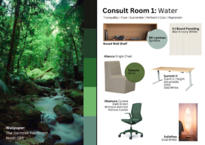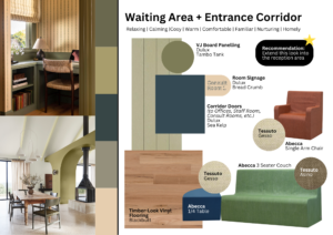 - Waiting Area & Entrance Corridor: The waiting area and entrance corridor were conceptualised to create a welcoming and calming atmosphere characterised by relaxation, warmth, and familiarity.