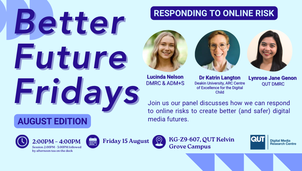 With Guest Speakers | Lucinda Nelson, QUT DMRC & ADM+S, Dr Katrin Langton, Deakin University, ARC Centre of Excellence for the Digital Child, & Lynrose Jane Genon, QUT DMRC