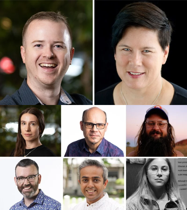 Clockwise from top left: Kateryna Kasianenko, Professor Axel Bruns, Brett Tweedie, Shir Weinbrand, Dr Ashwin Nagappa and Professor Daniel Angus.