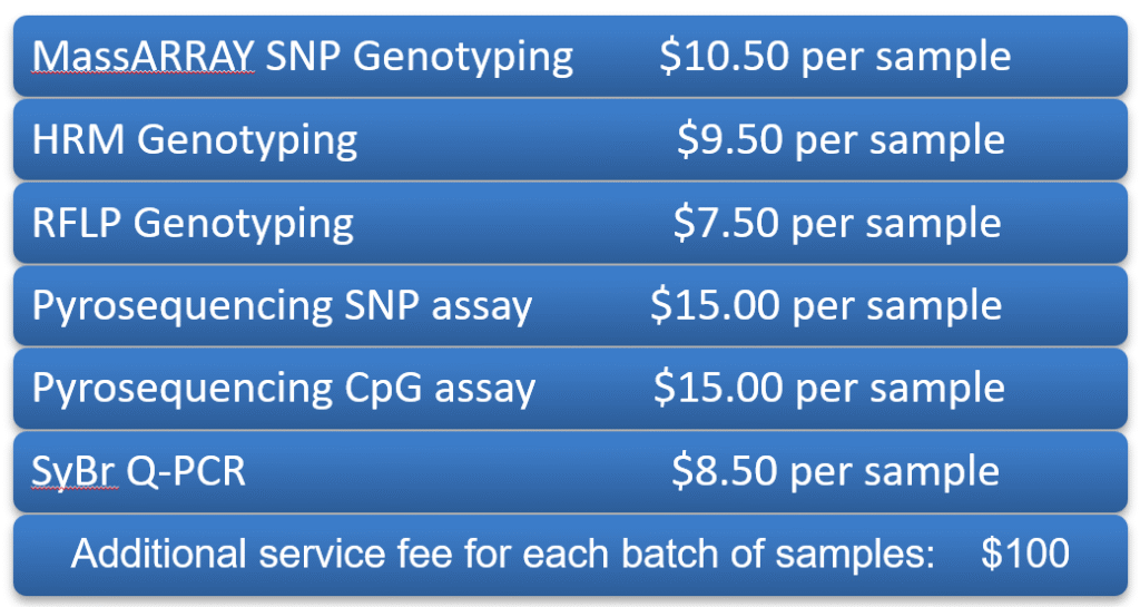 Genotyping – MassARRAY, HRM, RFLP, pyrosequencing, gene expression
