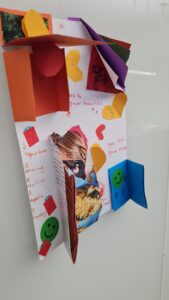 One of the families told us about the choices they made for an artwork they created for their family using the Kintsugi technique to reflect their particular journey. They chose to use large china Lego figures which they broke and repaired in a deliberate way.