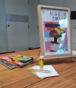 The QUT Design Lab team set up a Maker Space activity table – a popular way for guests of all ages to express their messages of hope which will then be made into a Zine (a collage magazine).