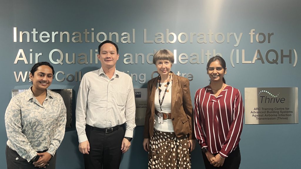 Professor Lin is Coordinator of the Environmental Engineering Program. Distinguished Professor Lidia Morawska gave a tour of our facilities and explained our work in indoor air quality.