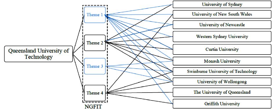 The ongoing research collaboration between the CIs of QUT and the partner universities are classified into four themes: