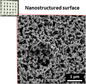 Bactericidal polymer and ceramic surfaces. The overuse of antibiotics significantly contributes to antimicrobial resistance, leading to infection. Alternative approaches to prevent infection are needed. The problem is particularly pronounced for percutaneous (skin-crossing) devices, with infection rates reported as high as 30% for urinary catheters. Developing mechano-bactericidal nanostructured surfaces on implants, inspired by the bactericidal surfaces of insect wings, has proved to be an efficient pathway to reduce the growth of bacteria. However, the techniques used to develop these nanostructures are generally effective only on 2D external surfaces and are time- and labour-intensive. In addition, most of these techniques have been developed for metallic (e.g., titanium) and ceramic implants. Our team develops new techniques to create 3D nanostructured bactericidal surfaces on polymeric implants.