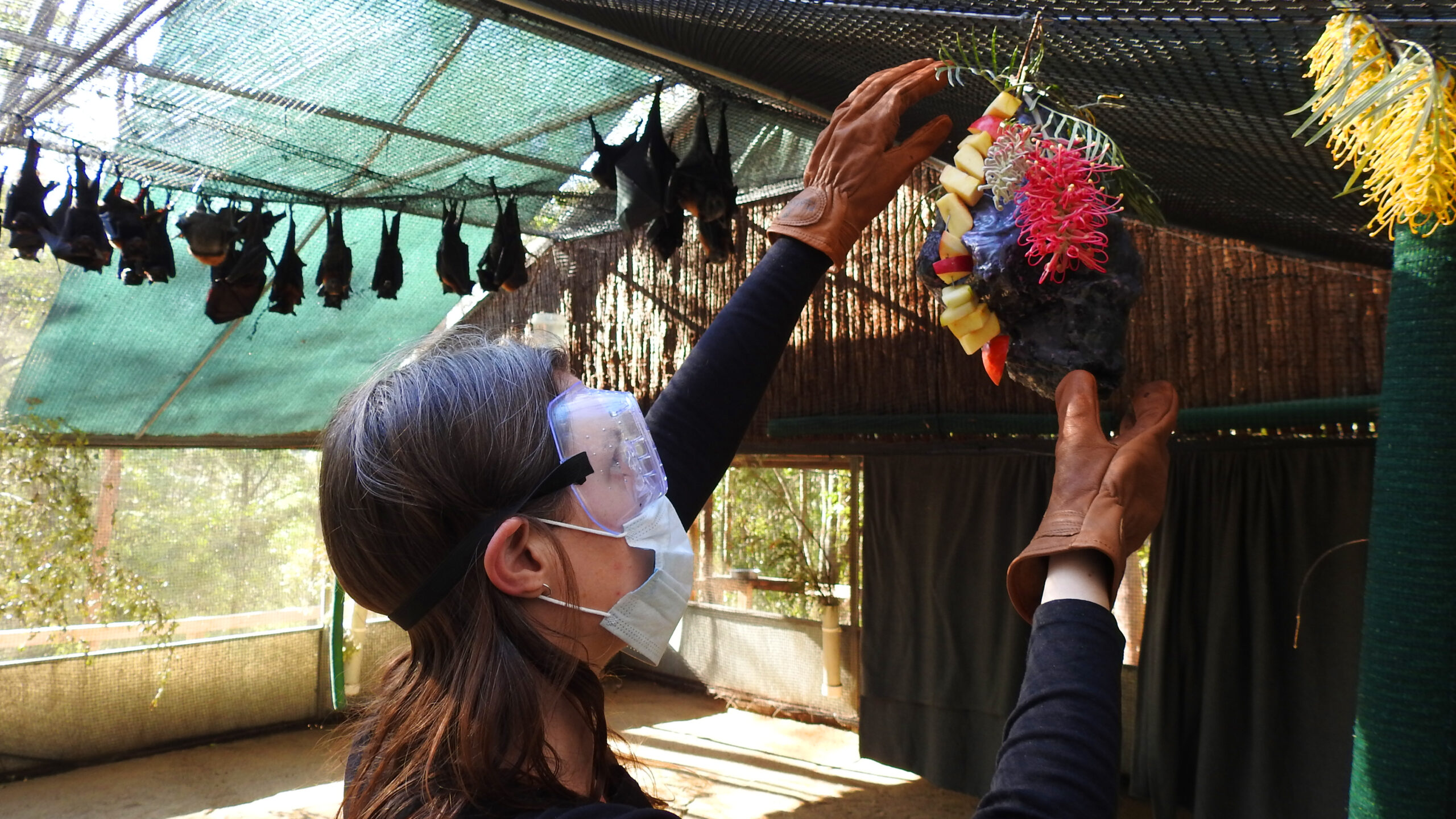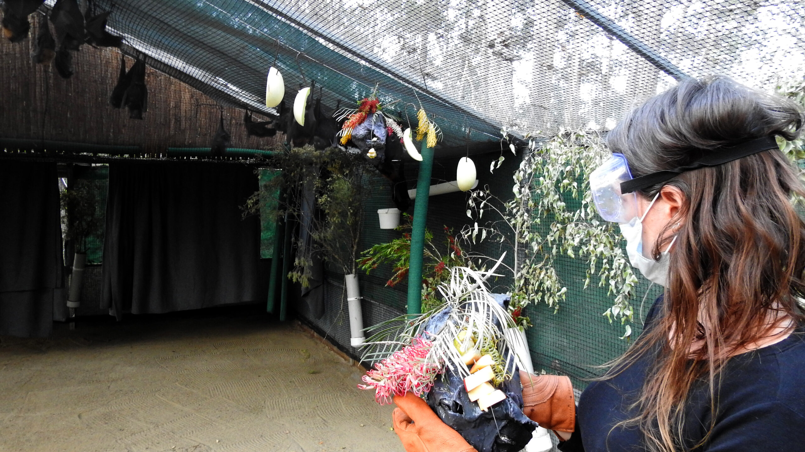 This research investigates the nature of interactive and digital art for nonhuman end-users, focusing on enrichment as a lens for positive nonhuman artwork interactions. I place this within a context of interactive art as enrichment for wild flying foxes in rehabilitation care undergoing rewilding. The project speculates on a multispecies future for Anthropocenic arts in which the needs of other species are ethically considered. I contend that through knowledges from the field of animal enrichment design and animal care, we are better able to create artwork artefacts that cultivate enrichment. I use a Creative Practice Research approach that is informed by frameworks and processes from animal enrichment design, proposing the ‘S.P.I.D.E.R. CPR’ approach. I use methods of ‘giving’ flying foxes artefacts in order to reflect on engagements between individual animals, humans, and artworks. This results in two main interactive art projects, including ‘The Quantum Enrichment Entanglers’ touchable and digitally-enabled sculptures. These sculptures send enrichment audio to each other based on when and how flying foxes are interacting with them. I find that digital interactive art, in particular, can expand enrichment opportunities by paying attention to levels of sensory exploration and interspecies relationships between end-users. This is important for the future of the technology-based arts, as current research in the field sees it attempting to move beyond human-centrism in design, aesthetic, and user-ship, and towards more-than-human interactions and considerations.