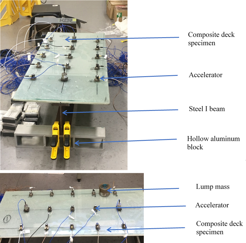 The research project aimed to develop a combined experimental–numerical procedure to study the vibration characteristics of the innovative slab girder pedestrian bridge (developed in a previous project) and then use them to detect and locate damage in the bridge. Experimental free vibration tests on the bridge in its healthy state and under selected damage scenarios were conducted to determine the natural frequencies and the corresponding mode shapes. These free vibration responses were used to study the vibration characteristics of this bridge and then to use them to detect damage in the bridge using the modal flexibility method.