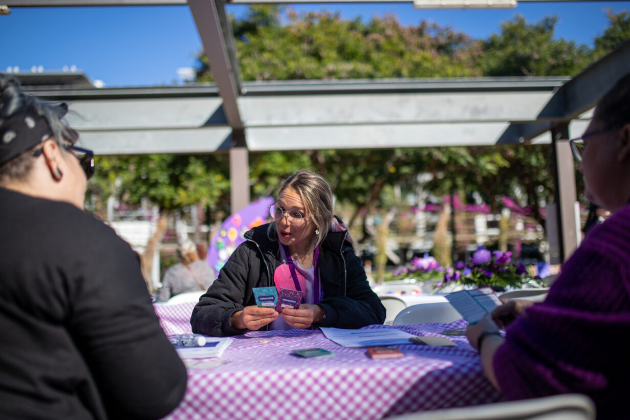 The following are images of the project team running a Advocate Card Game Session at World Elder Abuse Awareness Day (WEAAD) 2023 at Southbank Parklands, Brisbane.