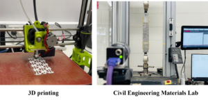 QUT’s additive manufacturing facility is equipped with many 3D printers that can produce polymer shapes and geometries in various sizes and different filaments such as PLA, ABS, Nylon, TPU. The facility also helped in 3d designing, modelling and scanning. The Civil Engineering Materials Lab at QUT has various equipment for compression, tension, bending and shear testing of different civil engineering materials. The lab is also equipped with concrete mixing and pouring space and machines.