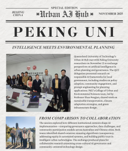 In November 2025, our QUT Urban AI Hub team embarked on a week-long academic visit to Beijing, engaging with four of China’s most prestigious research institutions. Each university brought distinct expertise to the conversation – from environmental planning and circular economy to climate modeling and architectural innovation. What emerged was a rich tapestry of perspectives on how artificial intelligence can be harnessed responsibly to address the complex challenges facing rapidly urbanizing regions. This wasn’t just about presenting our research; it was about learning, connecting, and exploring collaborative pathways toward more sustainable and intelligent cities.