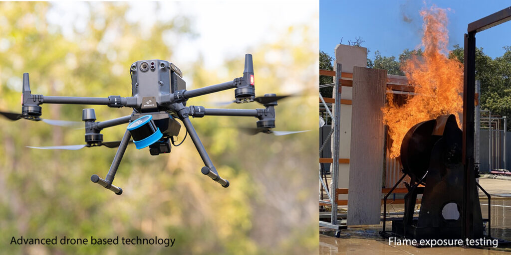 The team from Wind and Fire Lab in QUT’s School of Civil & Environmental Engineering and QUT Centre for Robotics in QUT’s School of Electrical Engineering and Robotics and the Research Engineering Facility used advanced drone-based technologies and computational heat transfer models, bushfire flame and radiant heat experiments and field studies to forensically identify features that contributed to building loss and vulnerabilities of existing buildings.