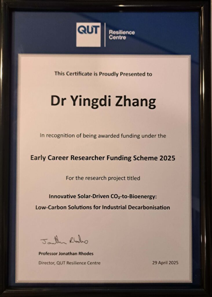 We are delighted to announce that Dr Yingdi Zhang has been awarded funding under the Early Career Researcher Funding Scheme 2025 by the QUT Resilience Centre.