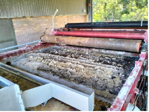 In the wastewater treatment plant operated by the Gold Coast City Council, waste-activated sludge generated from the treatment process undergoes anaerobic digestion in the digesters. The residual sludge from the anaerobic digesters is dewatered through belt filter presses. The operation of belt filter presses has been affected by solids precipitating in the units, causing tracking issues and increasing the need to be taken offline for maintenance.