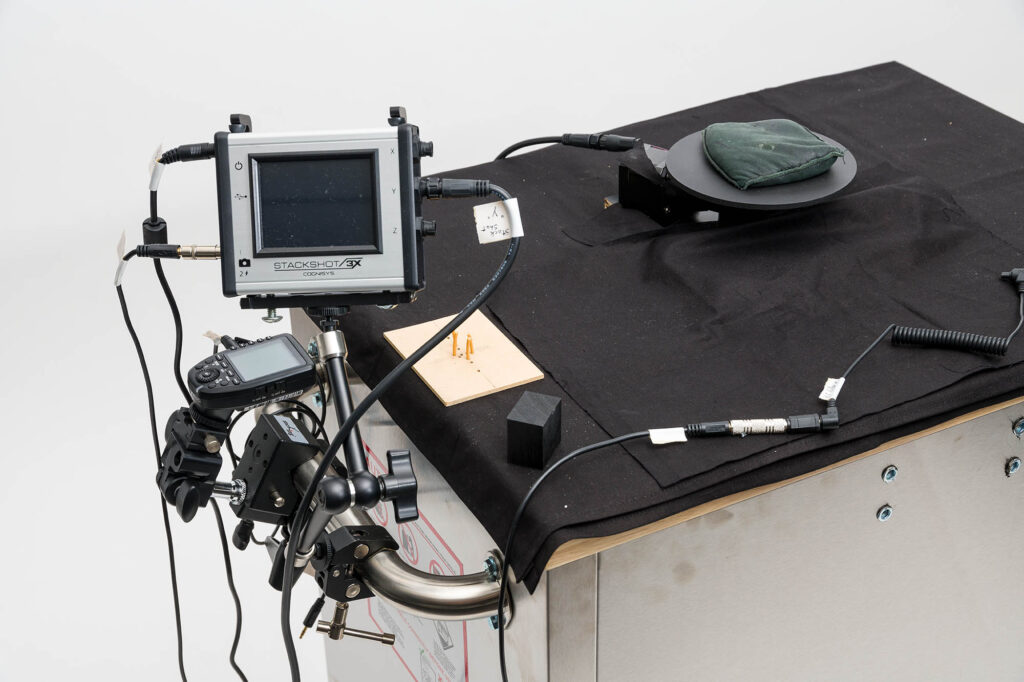 Of course with photogrammetry we are not just talking about a single still image. We need lots to generate a 3D model. Let’s say we create a single composite ‘stacked’ image from (a modest) 20 separate still images. If we then want to shoot it on a turntable say, every ten degrees – that’s 20 x 36 and if we do six orientations that’s times six again = 4,320. Which is a lot of photos and that’s why I use a robot. Plus a mirrorless camera in full electronic shutter mode!